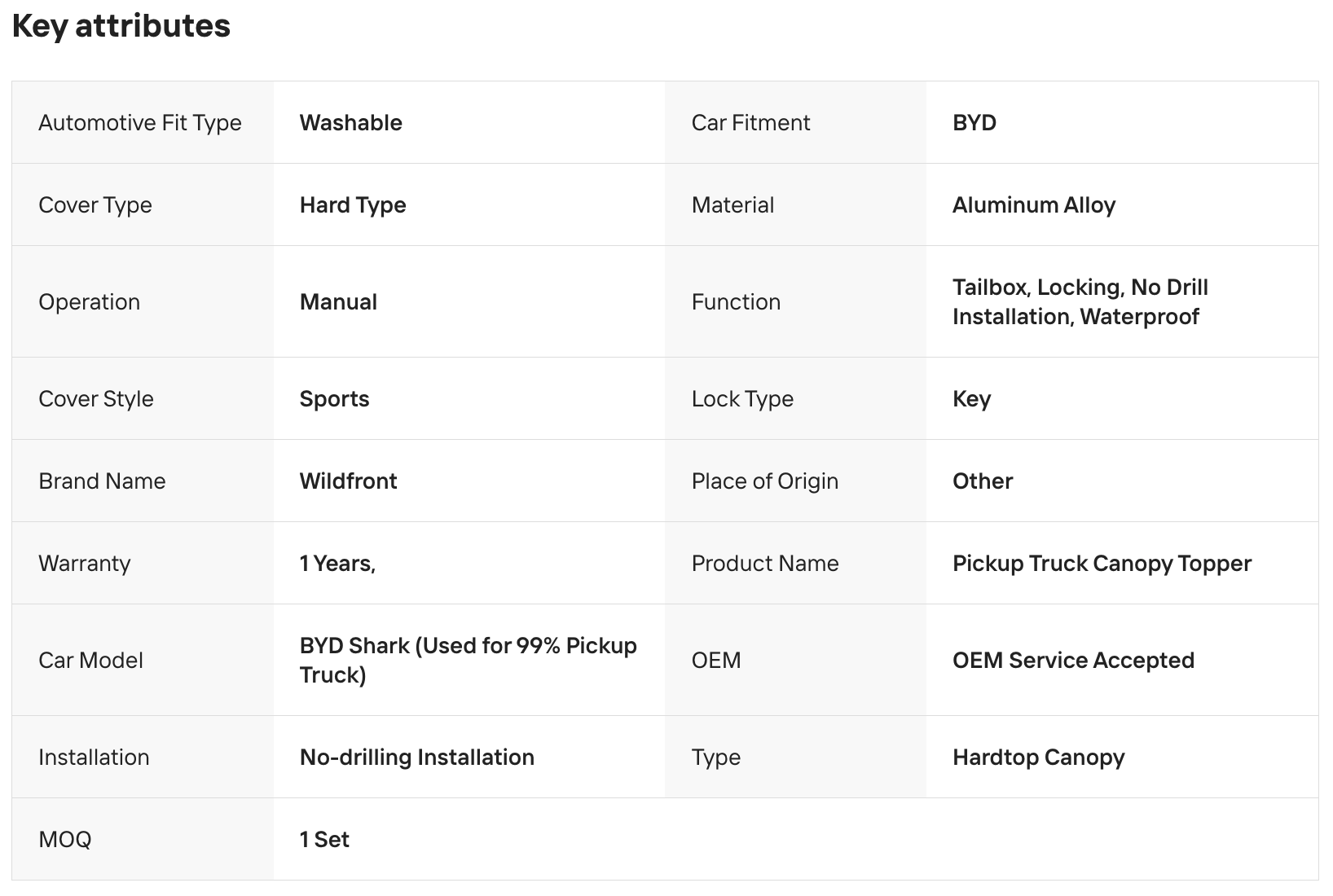 • Type: Pickup Truck Canopy / Hardtop Canopy